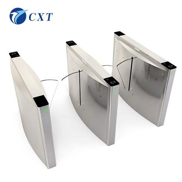 The working principle of wing gate: a door that can be quickly retracted is embedded in each wing of the channel. When the equipment detects the gate opening signal, the two doors will shrink synchronously and quickly, making the current channel barrier-free. The machine main control board has a pulse signal instruction, the control system directs the mechanical system to work, and the gate is pulled open. When the pedestrian passes the sensing point, the machine control mainboard notifies the movement motor to close the gate. The machine alarm for illegal intrusion has electronic anti-pinch and mechanical anti-pinch. The gate opens and closes in place to form a dead point mechanism, and pedestrians cannot open it, which improves the reliability of passage.